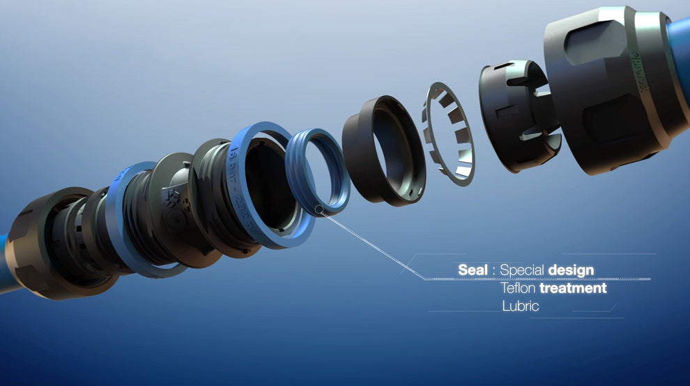 Asennus on nopeaa ja vaivatonta, ja järjestelmä voidaan paineistaa sekä ottaa käyttöön välittömästi asennuksen jälkeen. Putkisto on helppohoitoinen, helposti muokattavissa ja laajennettavissa tulevien tarpeiden mukaan. Laadukkaat nitriilitiivisteet takaavat tiiviin ja luotettavan rakenteen.